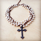White Turquoise Beaded Collar Necklace w/ Cross Pendant 260z