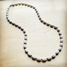 Add a touch of boho chic to your outfit with our Long White Turquoise Beaded Necklace. Perfect for layering, this necklace adds a touch of hippie style to any look. The white and wood bead combination is a standout feature that will surely catch everyone's attention. Elevate your style with this unique accessory.