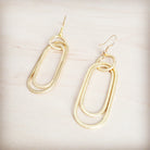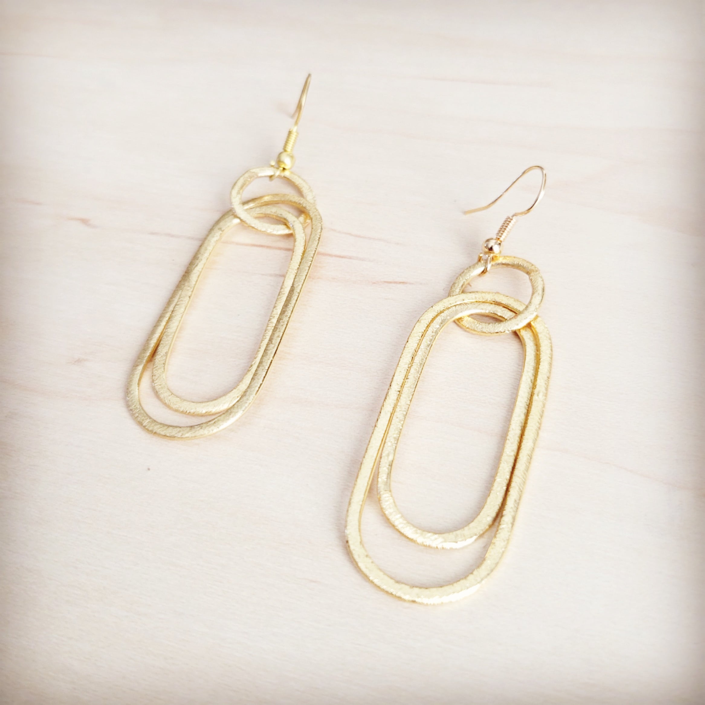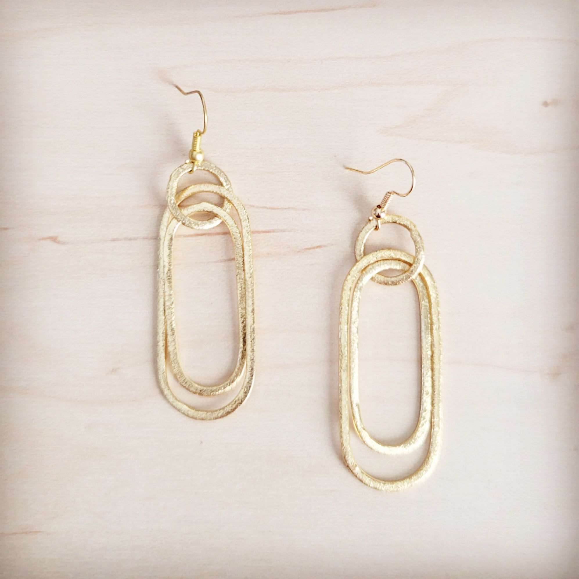 These elegant gold drop earrings feature sleek, interlocking oval hoops crafted from brushed gold-tone metal. The modern, stacked design provides beautiful movement and an air of polished sophistication, perfect for elevating any look.