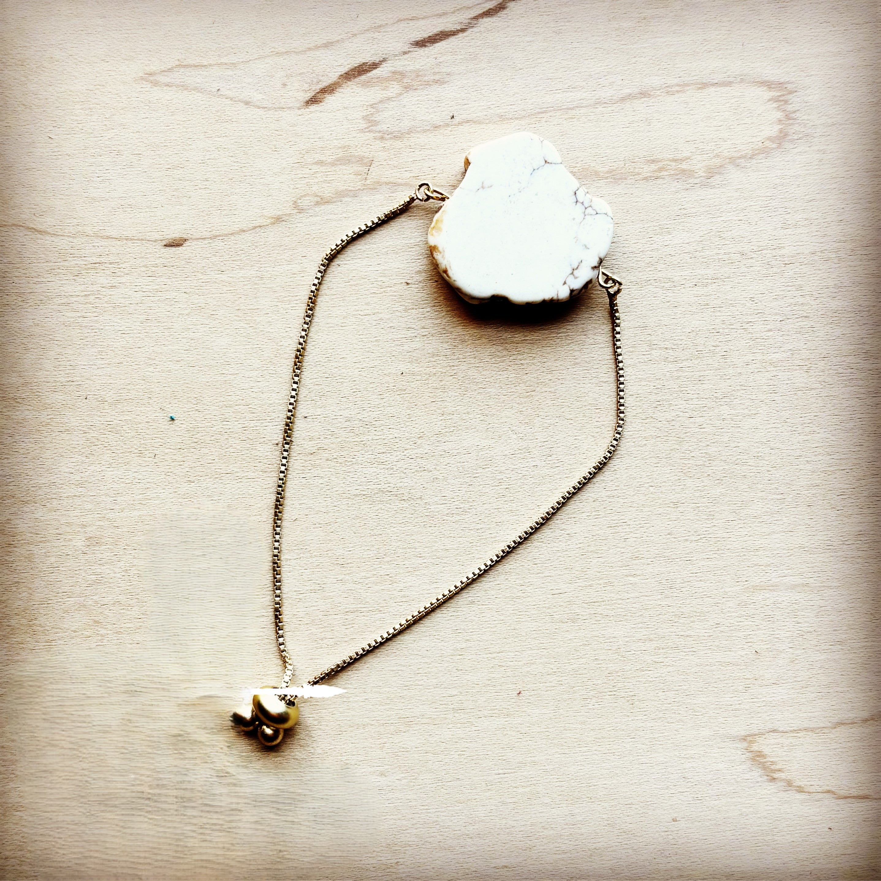 This White Turquoise Bracelet is a timeless classic, perfect for any occasion. The adjustable slide allows for a comfortable fit on any wrist size. Made with high-quality materials, this bracelet is durable and will last for years to come. Look stylish and elegant with this stunning piece of jewelry. Made of genuine howlite slab.