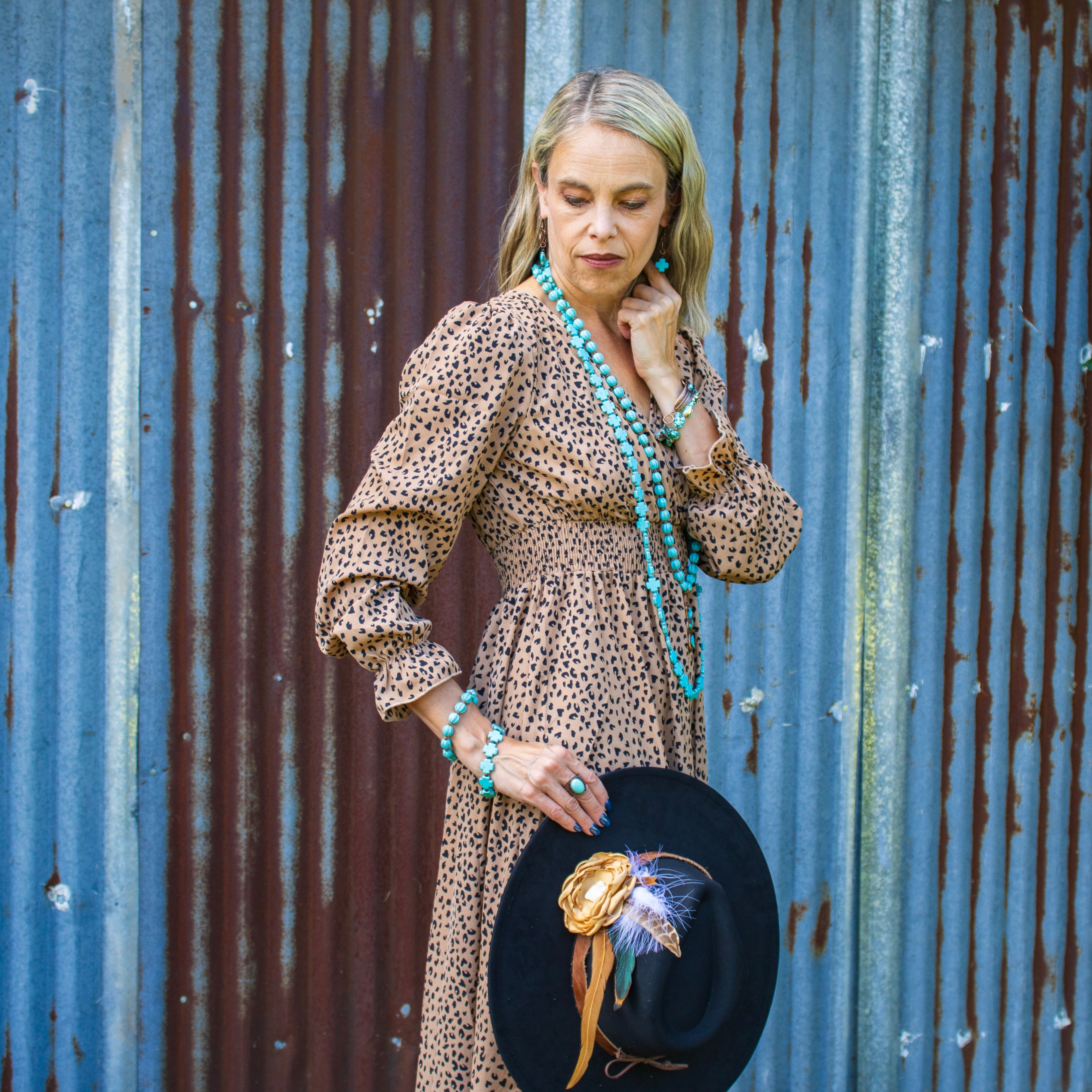 Expertly crafted with beautiful natural turquoise stones, these handmade copper earrings are the perfect addition to your boho fashion collection. Elevate any outfit with the unique and genuine stone design, creating a statement piece that is both stylish and natural. Embrace your individuality with these earrings.