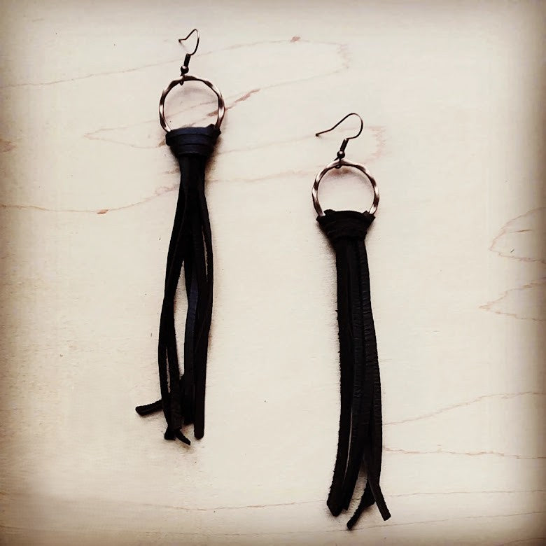 **Leather Tassel Earring-Black 206e