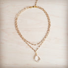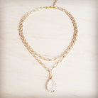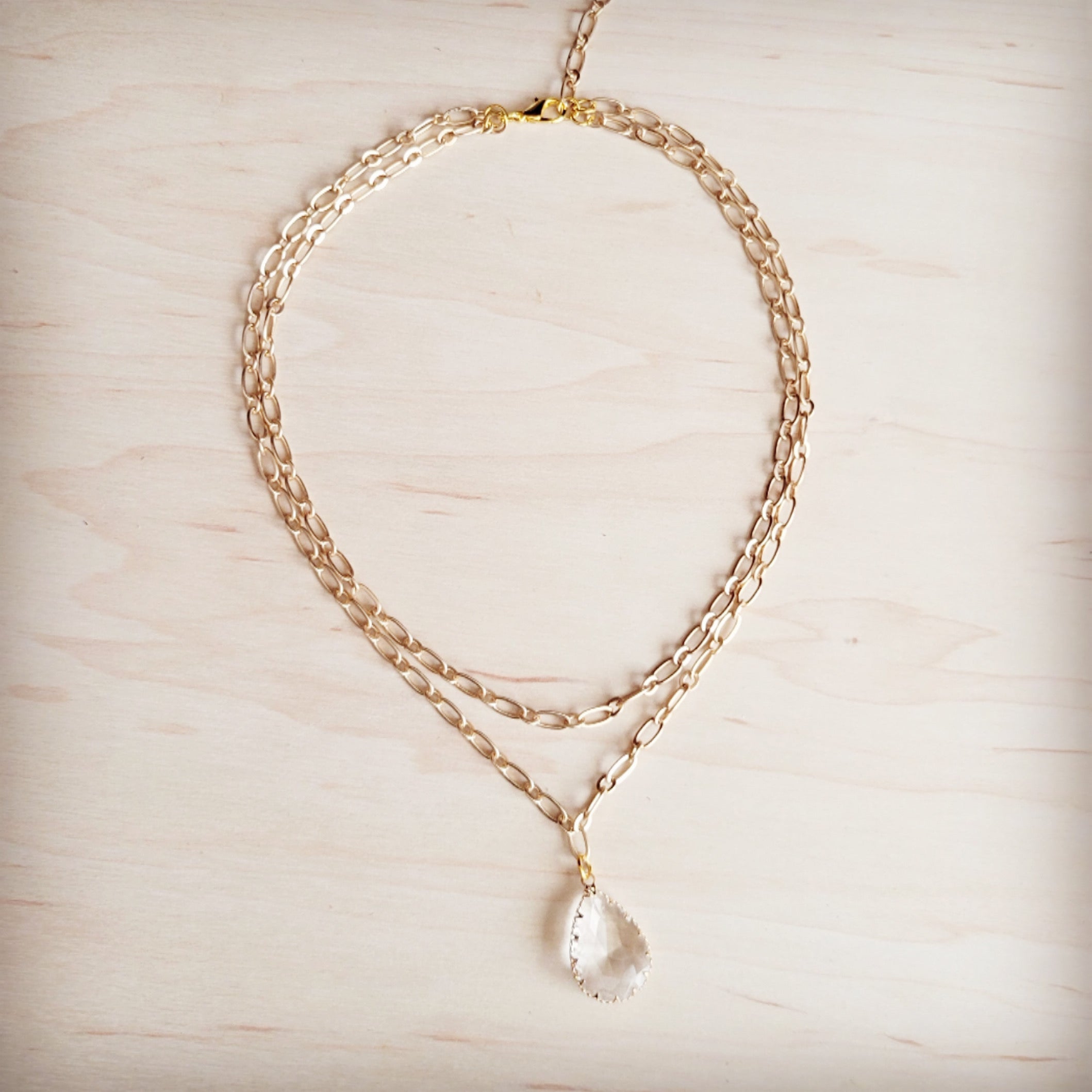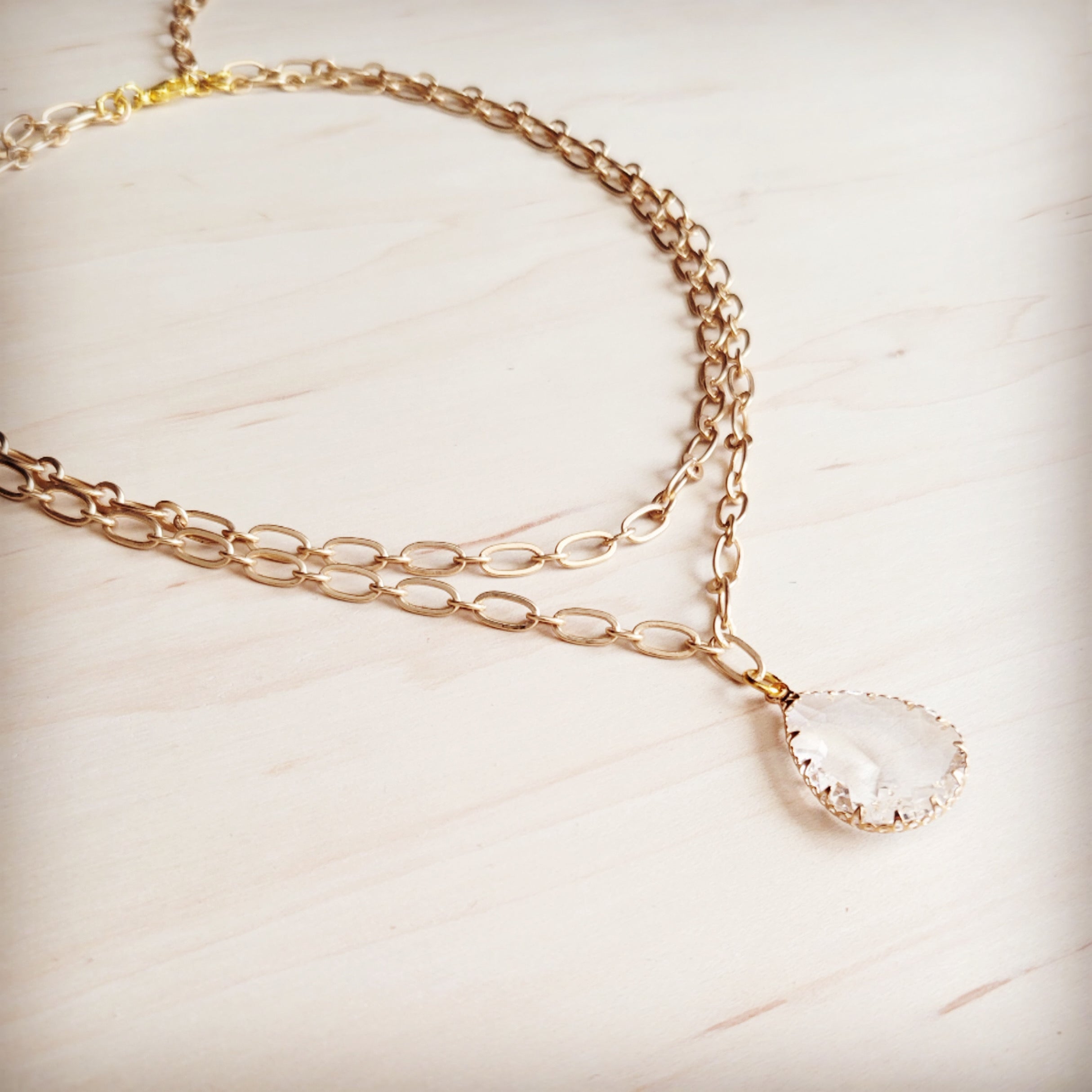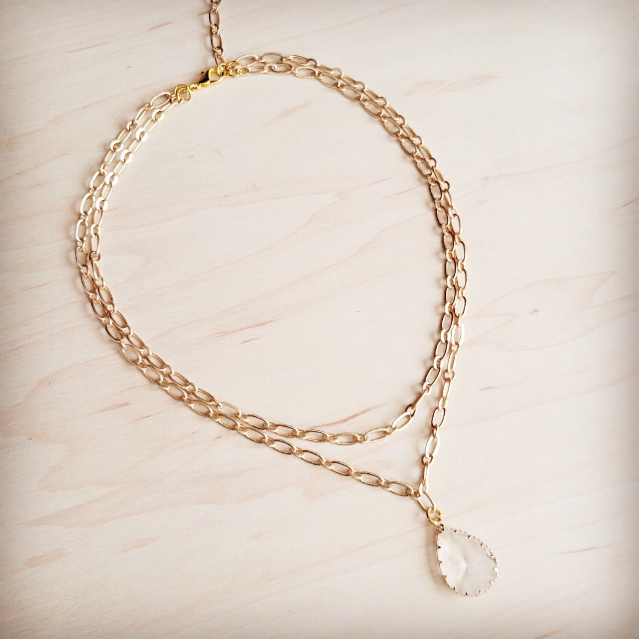 Double Strand Gold Chain Necklace w/ Boho Luxe Teardrop Pendant 257kq