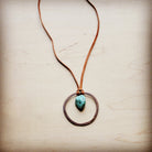Leather Cord Necklace Antique Gold Hoop & Natural Turquoise 254v