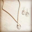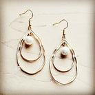Matte Gold Double Hoop Earrings with Pearl Dangle 203t