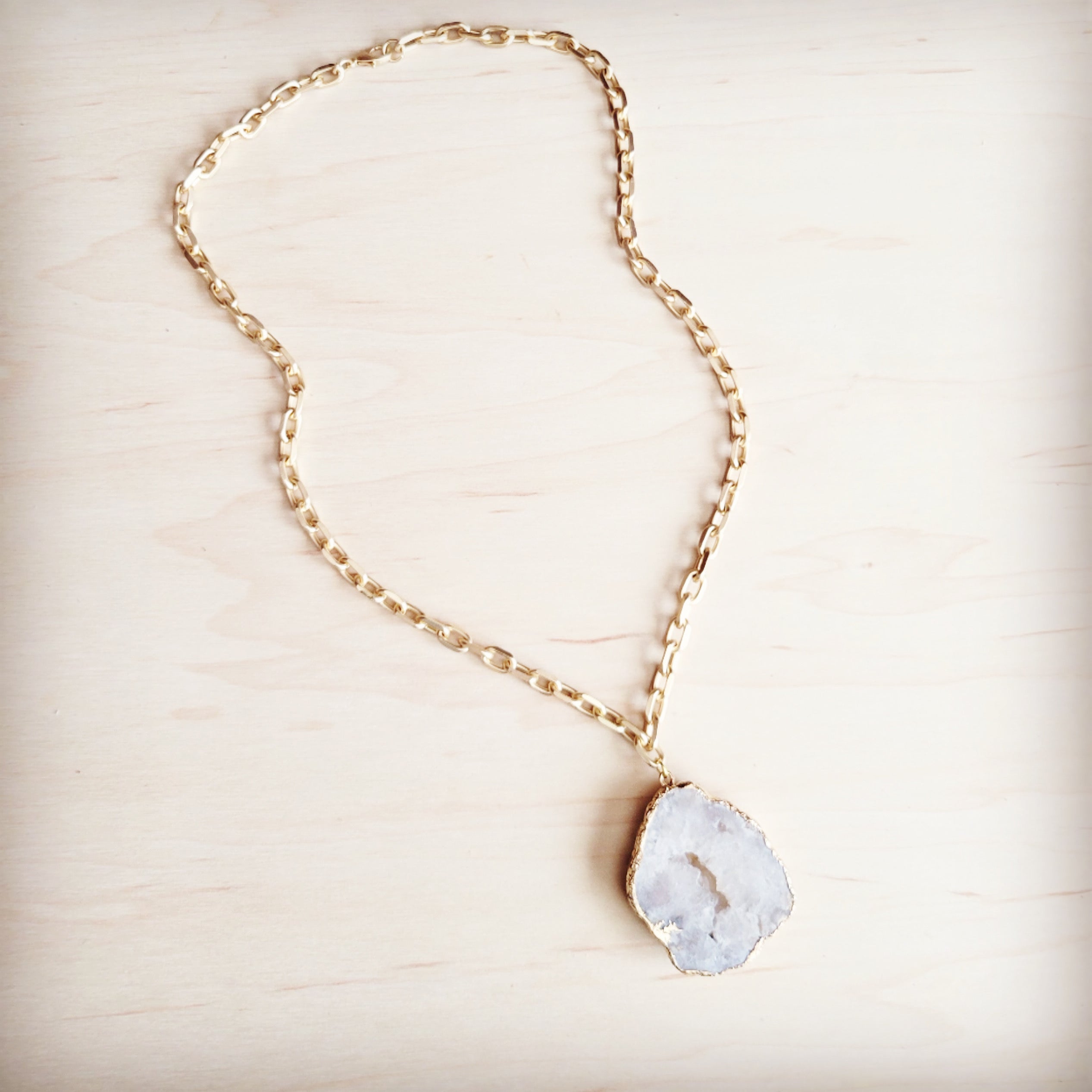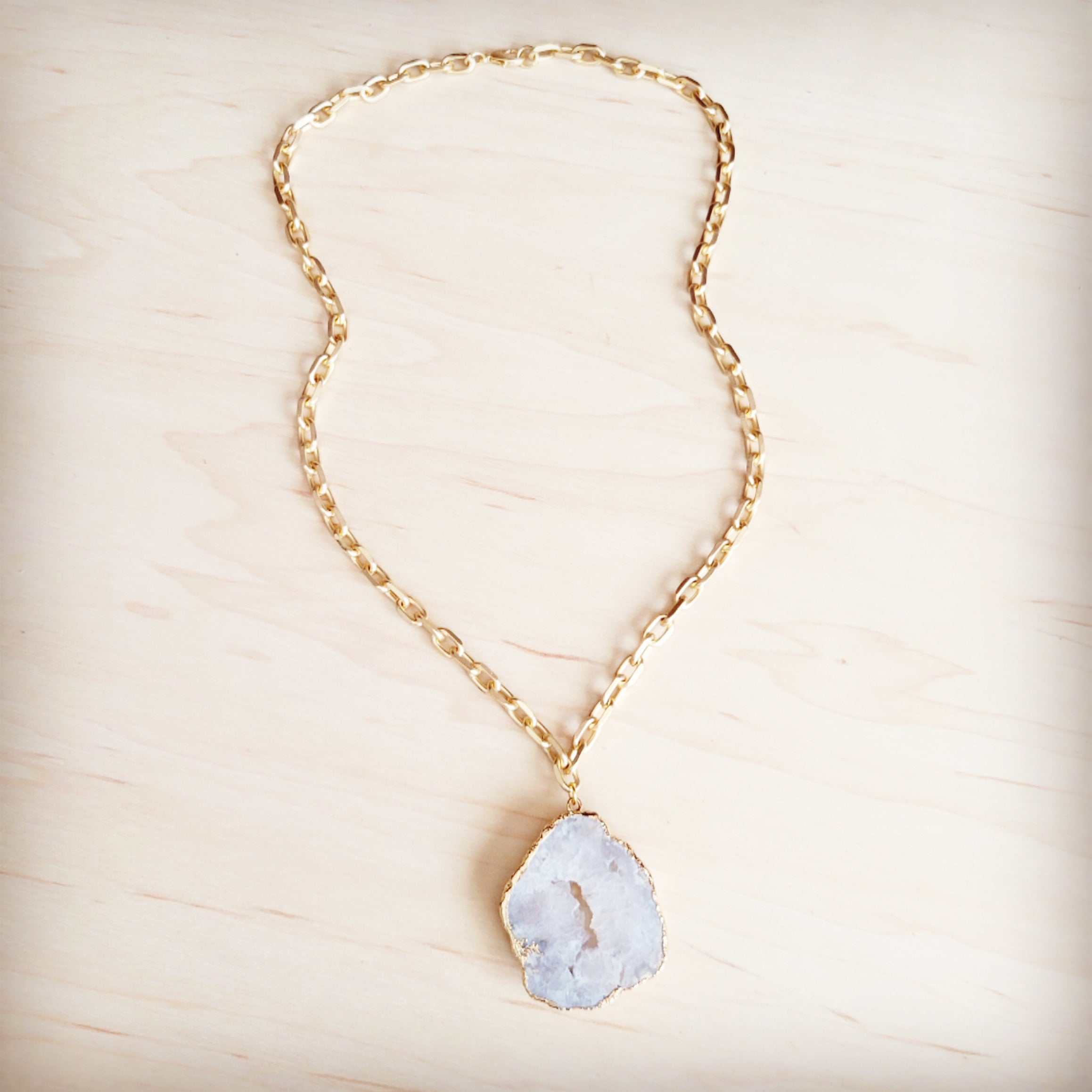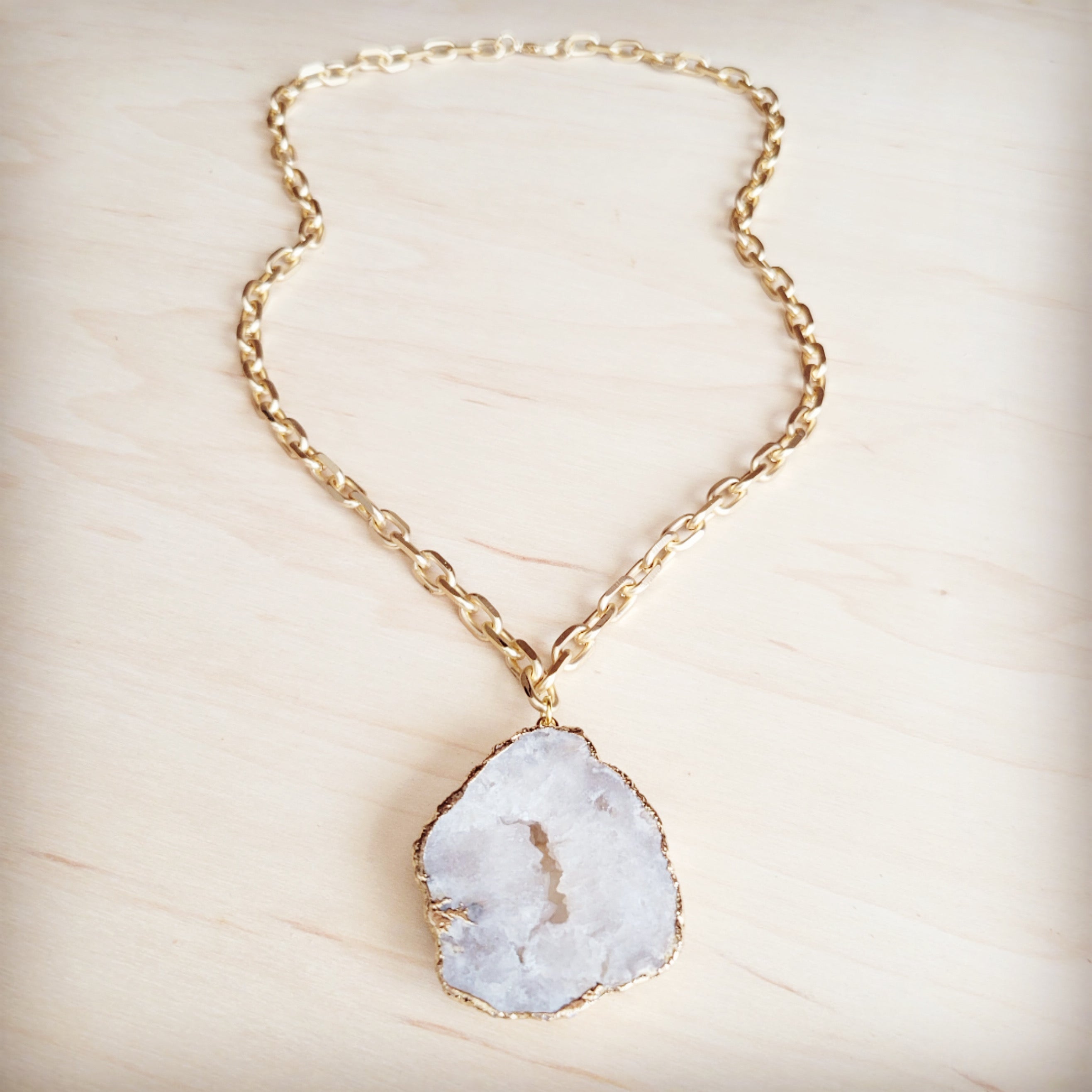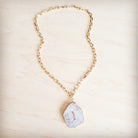 Matte Gold Gilded Agate Pendant on Gold Chain Necklace 257kl