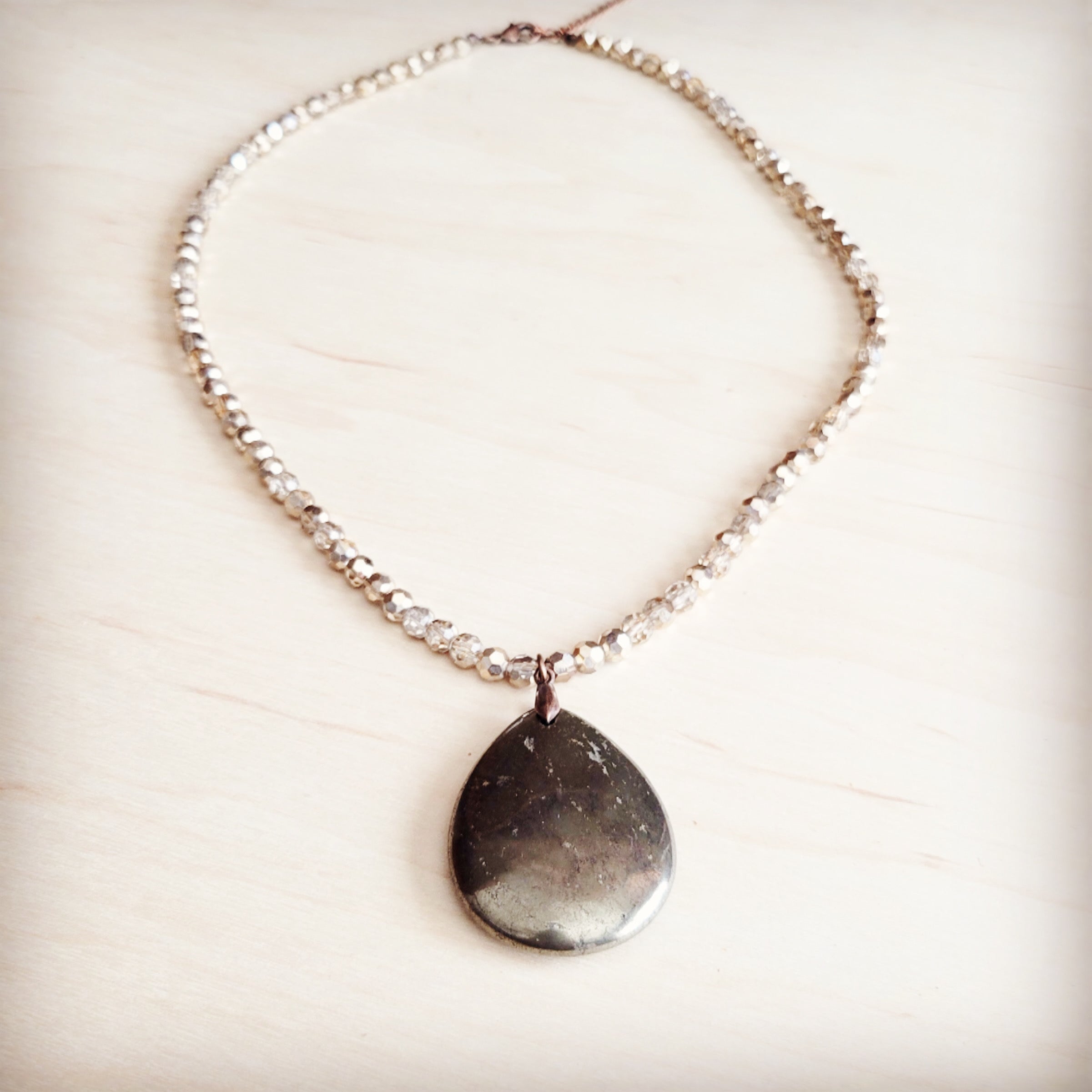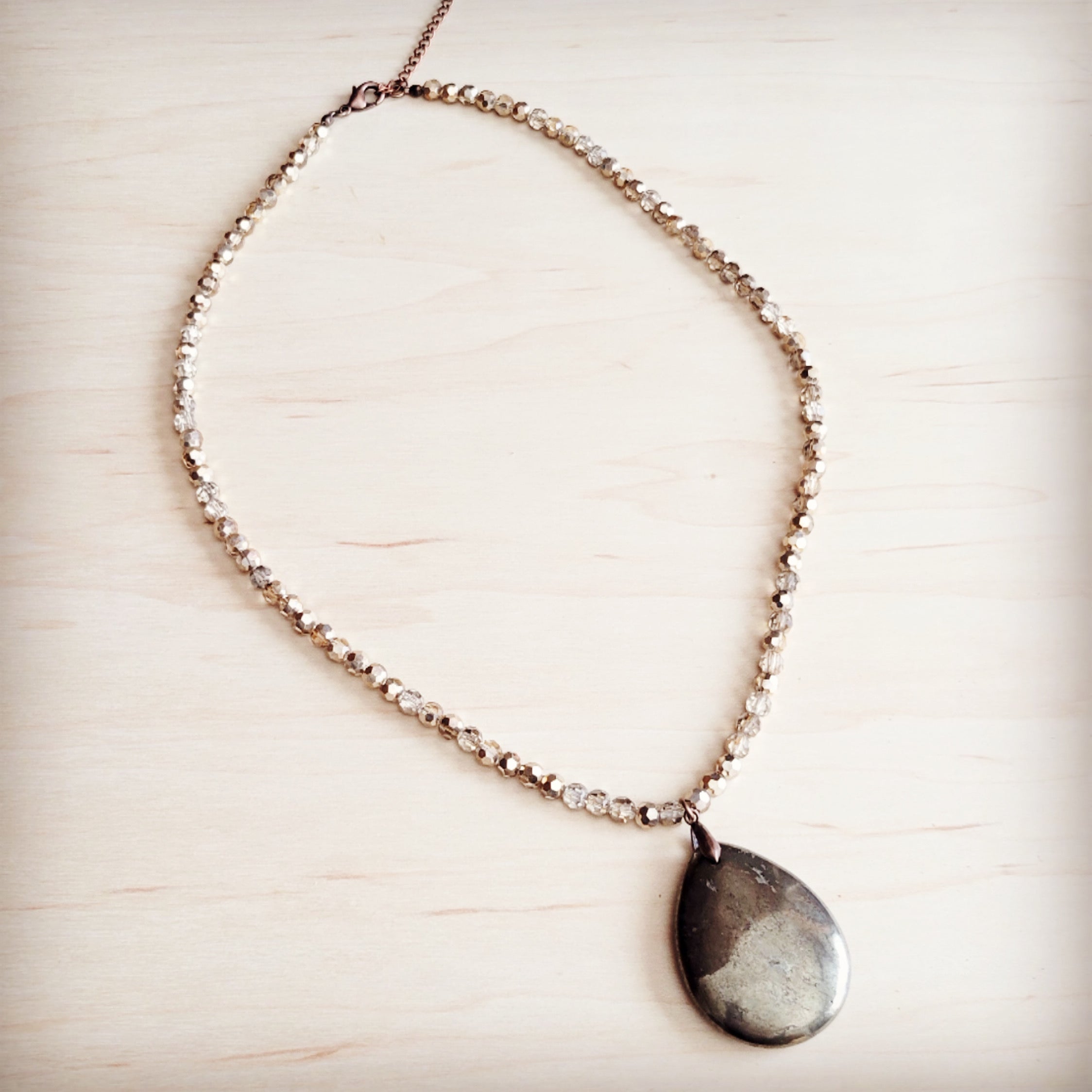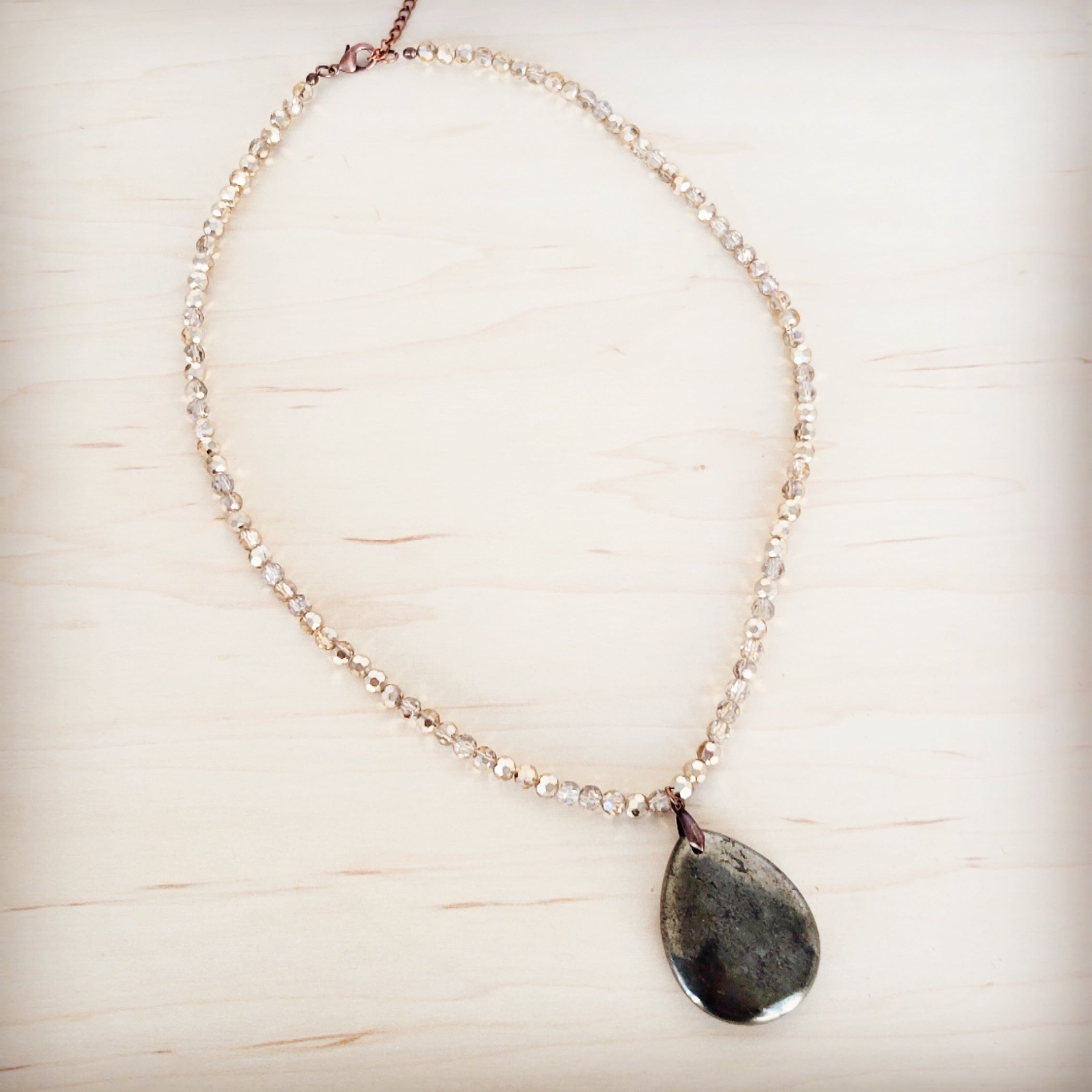 Desert Storm Beaded Necklace w/ Teardrop Pendant 257kf