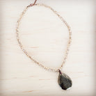 Beyond Basic Boho, this genuine Western Boho Style Necklace features a striking, luminous, treardrop pendant in deep, smoke Taupe, suspended from a single strand of beautifully faceted neutral-toned beads. Its subtle shimmer and grounded elegance offer a perfect, elevated blend of earthy chic and dazzling statement appeal.