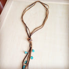 Rustic Knotted Leather Cord Necklace with Turquoise 263g