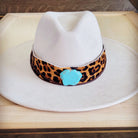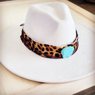 Wide Genuine Leather Leopard Hat Band Only w/ Turquoise 953h